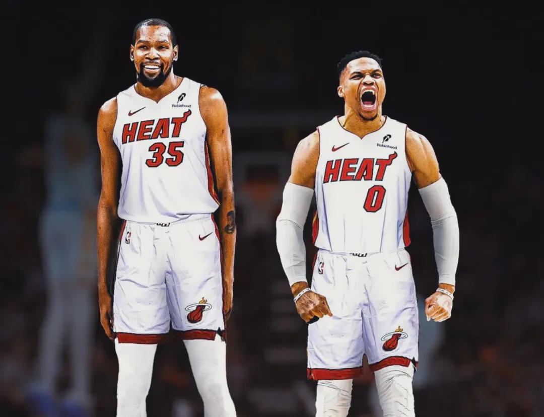 难道说威少&杜兰特,将时隔9年之久,在迈阿密重新联手?这是非常梦幻又值得相当期待的画面,情怀拉满足以震撼整个NBA,只不过两人如今的地位已经不能相提并论,一个现在只能拿底薪合同,一个仍是响当当的大牌超巨。